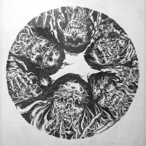 “Anthropophagus” Ink on Paper 8"x10" (framed) $400