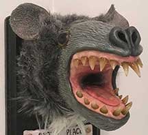 BIANCA PANZRAM “Astor Place Rat Faux Taxidermy” (5”x7”x7) polymer clay, acrylic, faux fur, findings / “Generic My Little Phoney Faux Taxidermy” (3”x5”x5”) pony doll, epoxy, acrylic, faux fur, gold leaf, wood