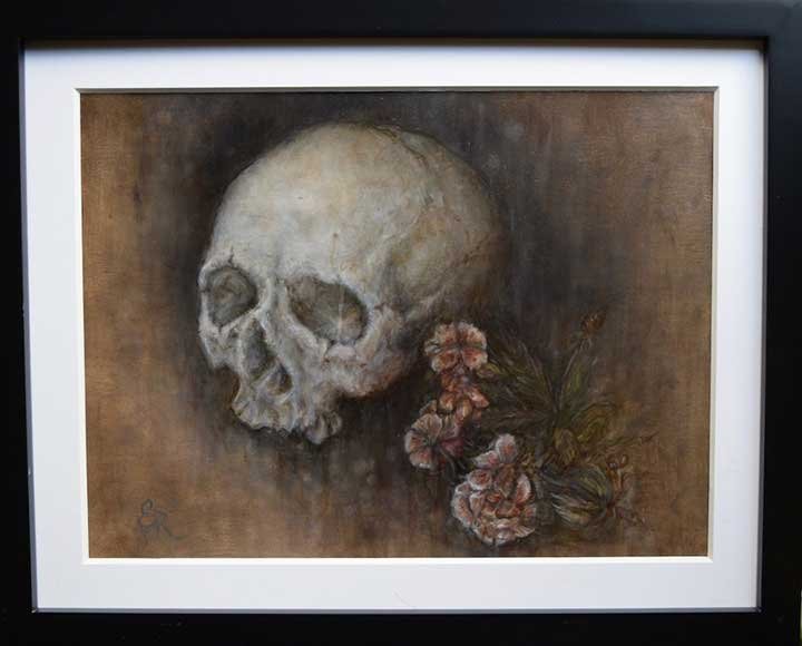SCOTT HOLLOWAY “Skull” (8”x8”) oil on masonite