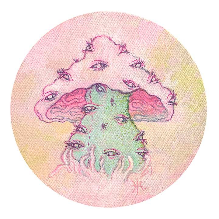 GINA MARTYNOVA “Mushrooms Have Eyes I” (5”) acrylic on canvas