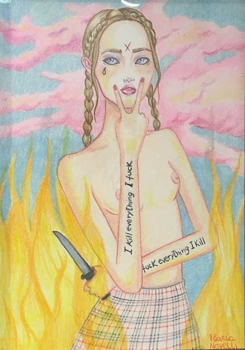 ILARIA NOVELLI “Eat Shit And Die” (7”x10”) colored pencils on paper