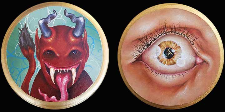 KRISTEN FERRELL “Lil Krampus”, “Lover's Eye” (5”) acrylic on wood