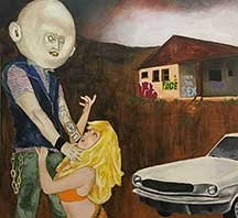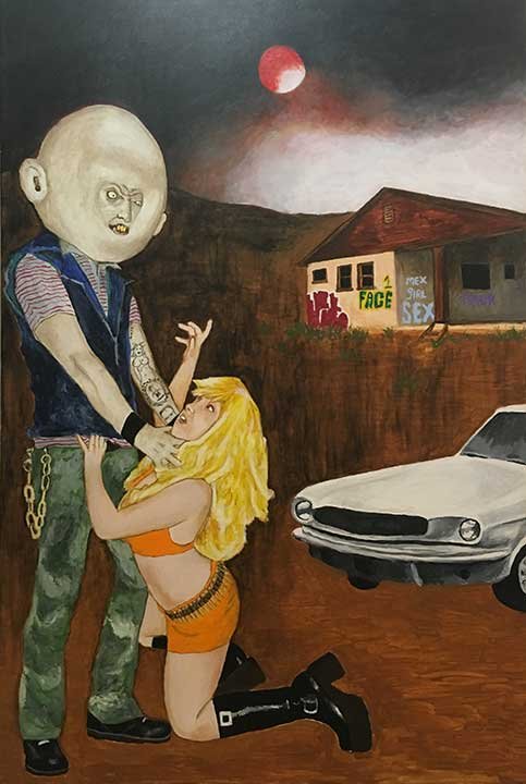 MARTINA SECONDO RUSSO “Deformed Movie Poster” (24”x36”) acrylic on canvas / “Baby” (16”x20”) acrylic on canvas / “Glenn Danzig” (12”x25”) acrylic and gold leaf on masonite / “Tattooed Limbs” acrylic and enamel on hand cut plywood (small ones are 2 for $150)