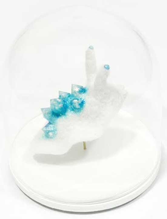 ZOE WILLIAMS “ウミウシ (Umiushi)” (3"x1.5"x2.5" in 4" custom glass dome) wool felt, resin, mixed media