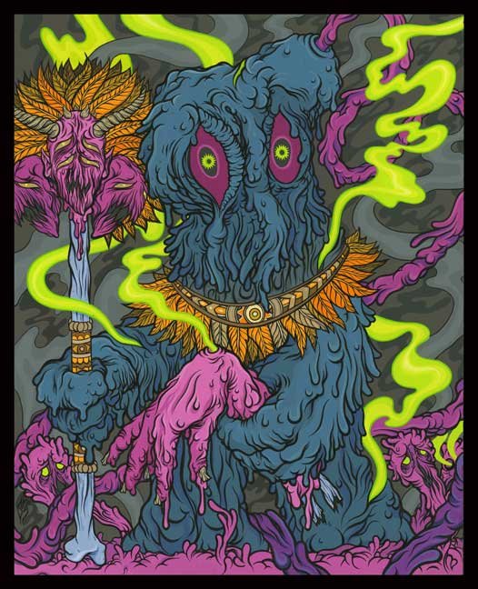 "Lord Hedorah, Demon God Monster of Smog" cel vinyl and speedball on wood (16"x20") $450