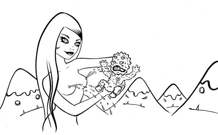 “Zombie Ice Baby” sumi ink on paper, framed (11”x7” in 17”x14 frame) $1200