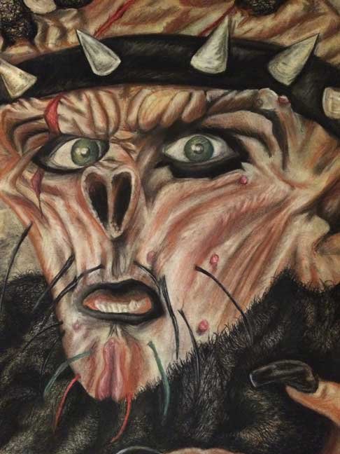 "Chaos Lord” charcoal, pastels, and conte crayon (18”x24”, 20”x27.5” framed) $300