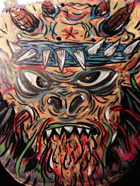 "(Smash your Deck) Oderus” cell vinyl on a broken skate deck (8"x9") $125