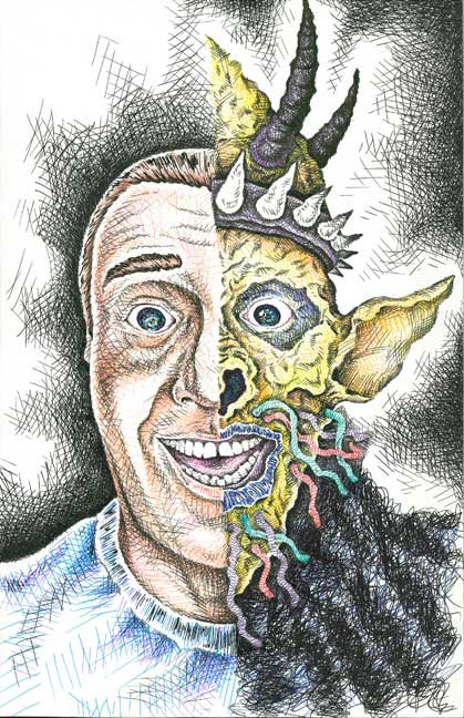 “Poet, Philosopher, Fart Noise Maker … Alas, Too Beautiful For This World" ink on illustration board (11”x17") $150
