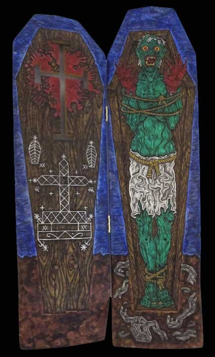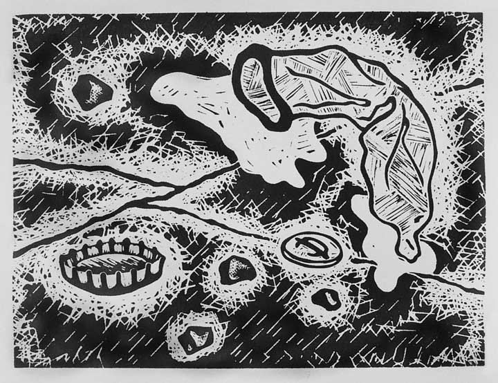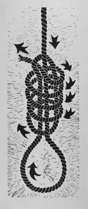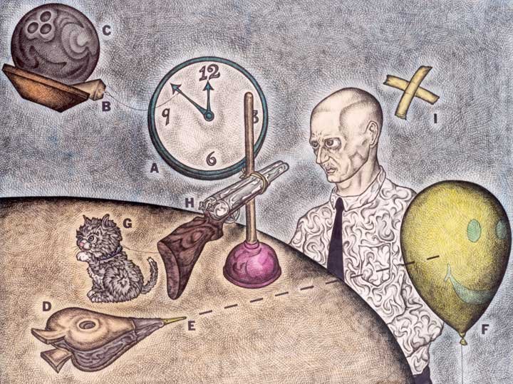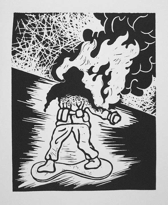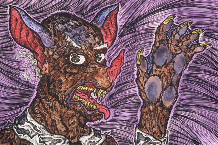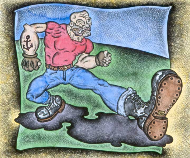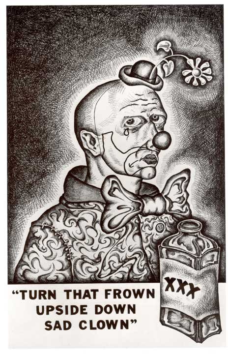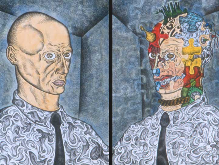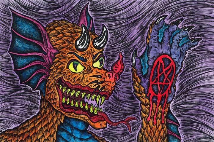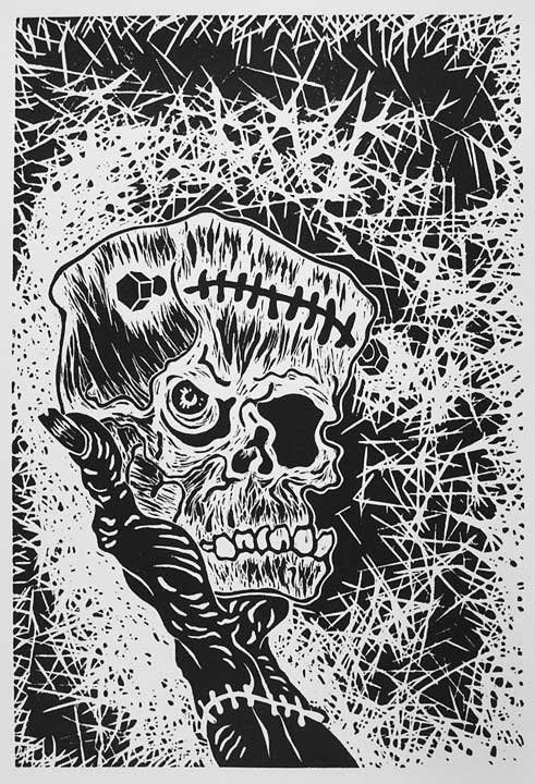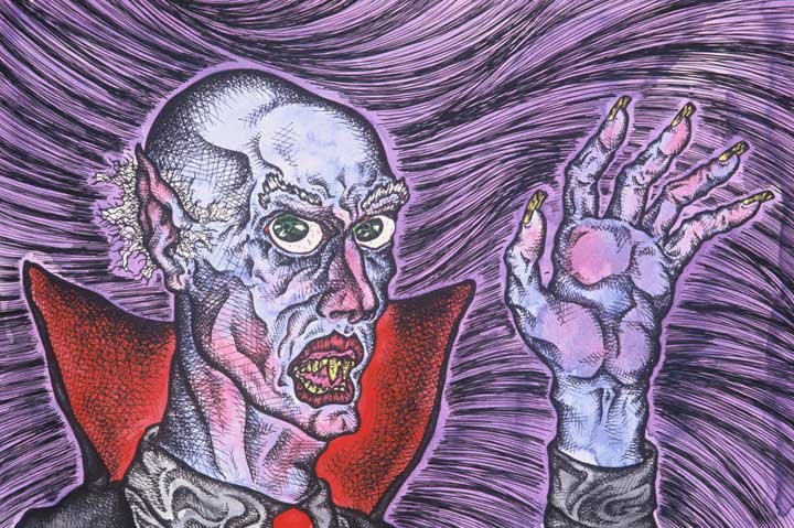 MF Gallery, fine purveyors of the eccentric and bizarre, are proud to present the collected works of one of their own. "Living In Interesting Times" is an exhibition of the drawings, paintings, prints and sculptures of Drew Maillard. There is an ancient Chinese curse that goes "May you live in interesting times." Drew Maillard was born and raised in America in the last quarter of the 20th century… A fascinating era to be sure. He is a product of his environment. Nature and nurture; habitat and conditioning combined. Drew’s adolescence was divided between comic books, horror and sci-fi films, and fantasizing about girls he didn’t talk to. Also there was Punk Rock and L.S.D.. After spending some time in the army and leaving his hometown in upstate NY, he received his Bachelor Of Fine Arts degree from SVA in 2000. His life experiences and travel, as well as an interest in scuba diving and ju-jitzu is what informs Drew’s crazy crazy artwork. Drew works in an originally distinctive style, which he creates with fervorous cross-hatching. He has been drawing near as long as he can remember, and shows no signs of letting up any time soon. He can spend days or months on a single drawing, hatching tiny little marks with a tiny little pen, or do a print edition start to finish in just one evening. Regardless of the choice of materials, he isn't afraid to get his hands dirty and jump in with both feet, head first. In the rising tide of media mediocrity and global standard cooling, it is necessary for someone to take a stand and proclaim in a loud forceful voice "This Shit Sucks!" And Drew will scream it from the rooftops... Figuratively and literally! At the Opening Party, Drew will be signing and drawing customized faces on special exclusive prints for only $30 each. He will also provide markers and give the audience a chance to customize their own prints. |