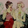 chests, depicted in bright vivid colors. These people’s