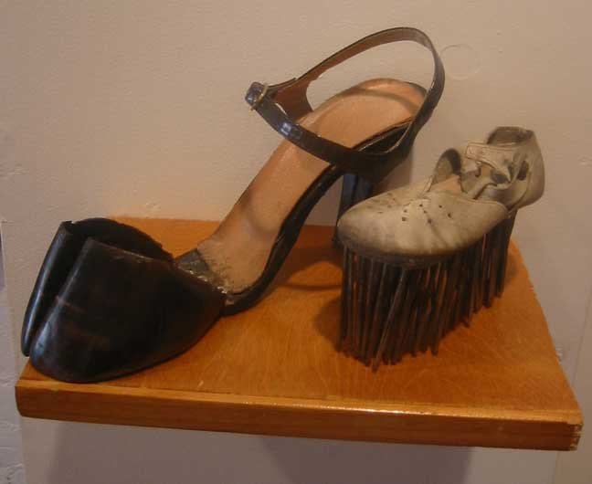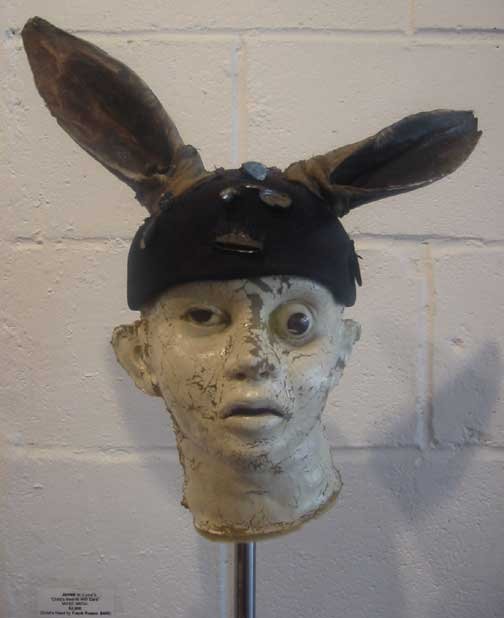 James Willcock "Child's Beanie With Ears", "Cloven Toed Shoe", "Child's Sandal" Mixed Media.. $1,600 each ("Child's Head" by Frank Russo)
