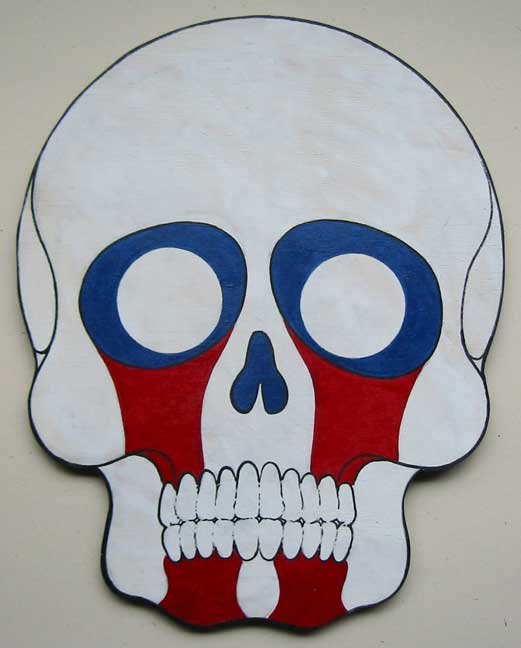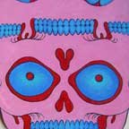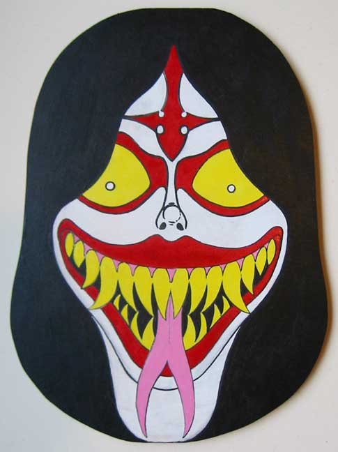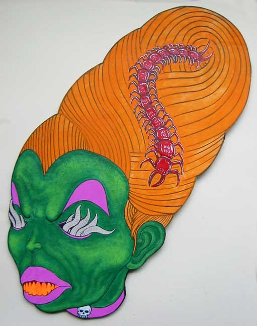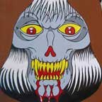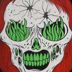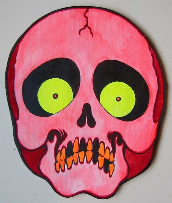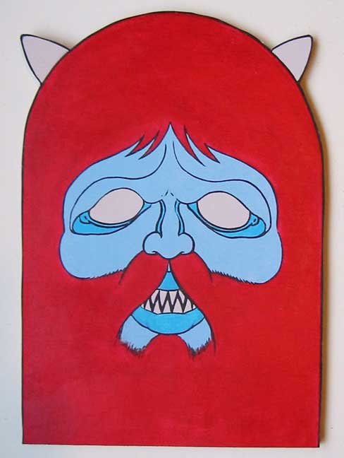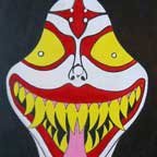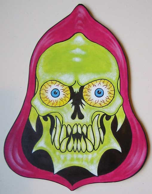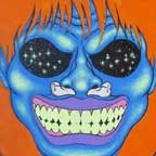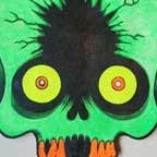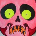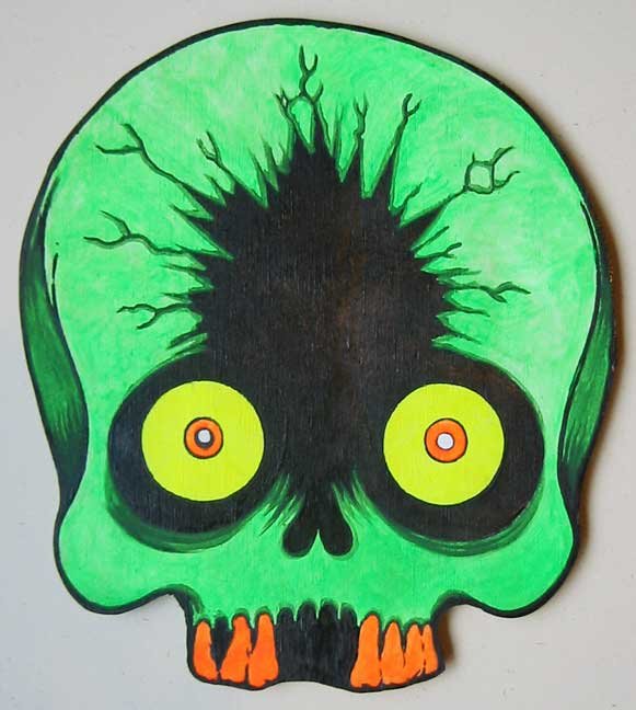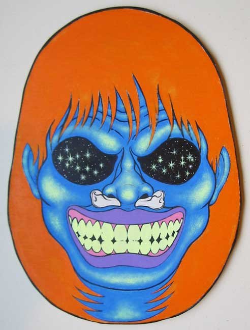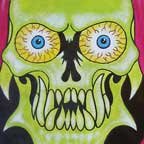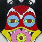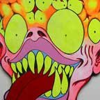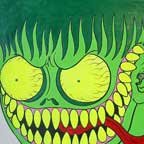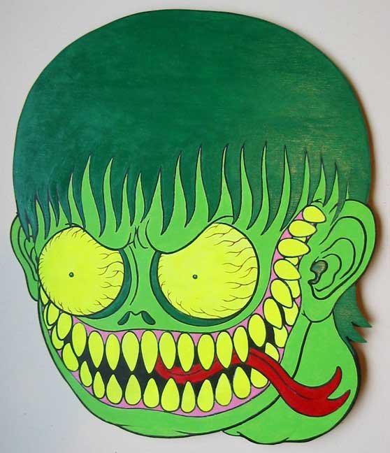 Collection of monstrous pop art heads Aliens! Monsters! Robots! Skeletons! Hideous Beasts! Witches! Grizzly Ghouls! ....The Monsterfaces are back with a new show! After the success of Frank Russo's "Monsterfaces" show in Brooklyn this April, he continues his quest of completing 80 new "Monsterfaces" paintings on wood, and will be showing a whole bunch of new ones at Live Fast Underground Gallery from July 23rd to September 5th, 2010. Frank Russo is a Brooklyn Artist who has been drawing comic books since the age of nine. His art fuses a life-long love for trash culture and fast music with a wide variety of styles and media such as comics, paintings, toys, props and costumes. In 2007, Frank Russo released a series of Collectable Art Trading cards called "Monsterfaces". Reminiscent of the "Garbage Pail Kids" of the 1980's, each card featured a "Monsterface" on the front and an original comic strip on the back. Now Russo is working on "Monsterfaces Series 2", and must therefore complete a whole new series of "Monsterfaces" paintings by the end of this year. Each original "Monsterface" piece is a wooden cut out, painted with acrylic in bright psychedelic colors. These paintings will be available for purchase through Live Fast Underground Gallery for a limited time only... Be sure to get one while they're here, before the cards come out and they become highly sought after collectibles! Also available at Live Fast will be full color prints, as well as hand-printed Monsterfaces T-Shirts.