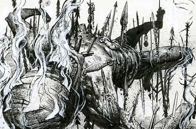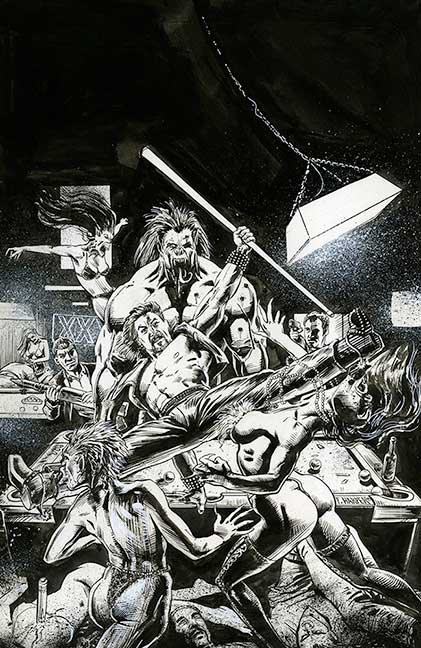![]() "Unnecessary Roughness" ink, white gouache on bristol (6.5"x4.5") $150 |