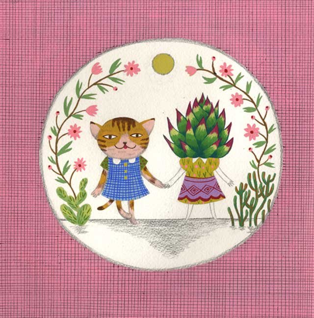 “Best Friends" gouache, ballpoint pen, graphite (9”x9”) $300