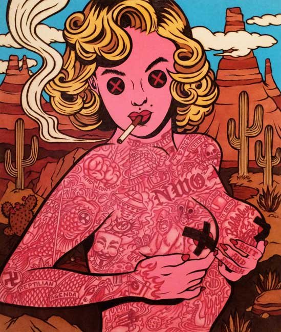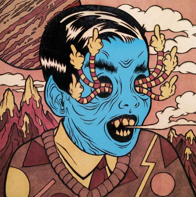 "Zero F*cks" Pyrography, stain, & Acrylic (16”x16”) $800