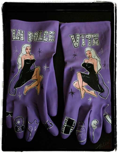 "“La Dolce Vita” Acrylic on Rubber Gloves (11"x14") $50