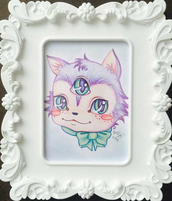 “Mystic Mow Mow” markers, acrylic, pastel, pencil (9”x10.5”) $130