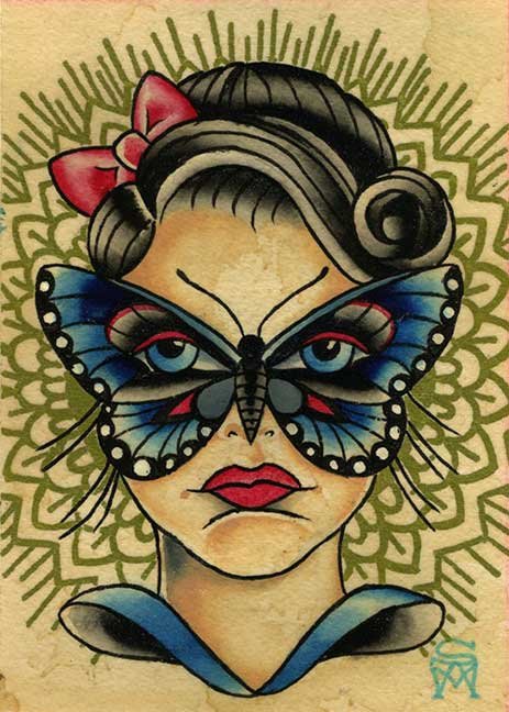 "Butterfly Face” Watercolor on Arches, Shellac (5”x7" - 6.5”x8.5” framed) $100