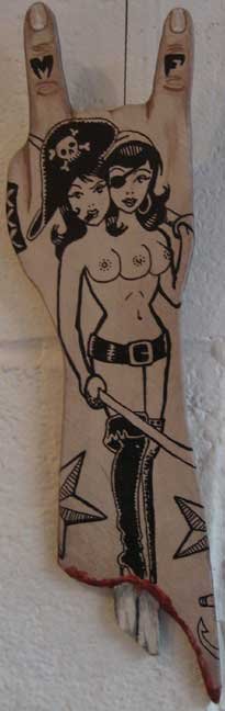 “Tattooed Arm (Siamese Pirate Girl)” Acrylic and Enamel on Wood $175