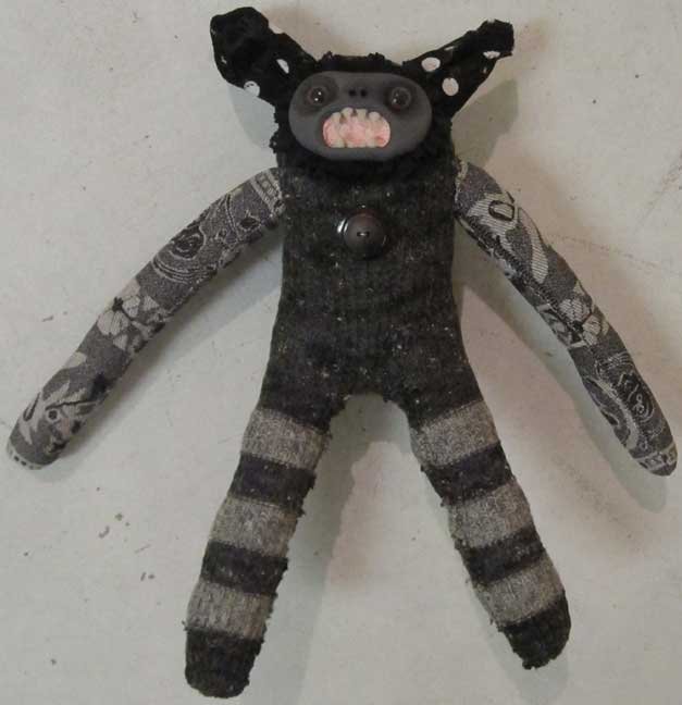 (sculpey, faux fur, acrylic, fabric, polyester)