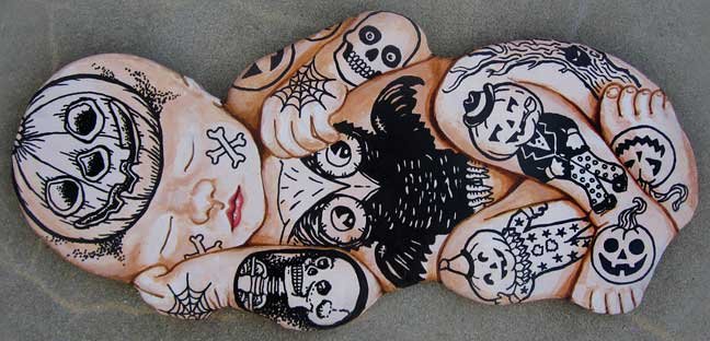 “Tattooed Baby: Halloween” (acrylic and enamel on hand-cut plywood) $400