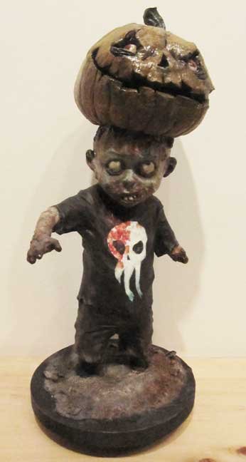 “Pumpkin-Hed” (sculpey, acrylic, wooden base) $300