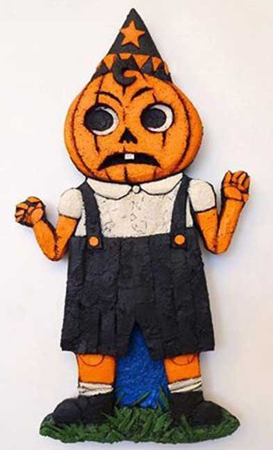 “Jack-O'-Lantern Brat” || cork carving, acrylic paint || $120