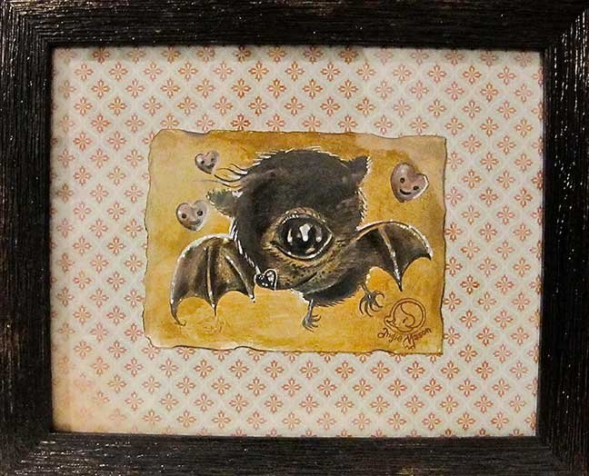 “I’m Batty For You” pencil, ink, watercolor (4x6” / 10x12” framed) $350