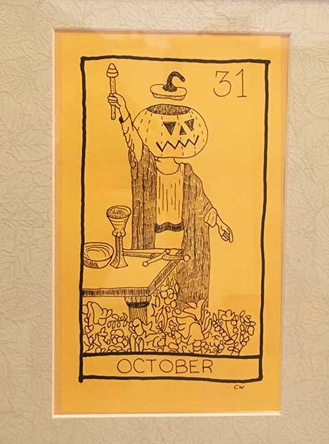 “Candy Corn Magician” ink and mixed medium, framed $60