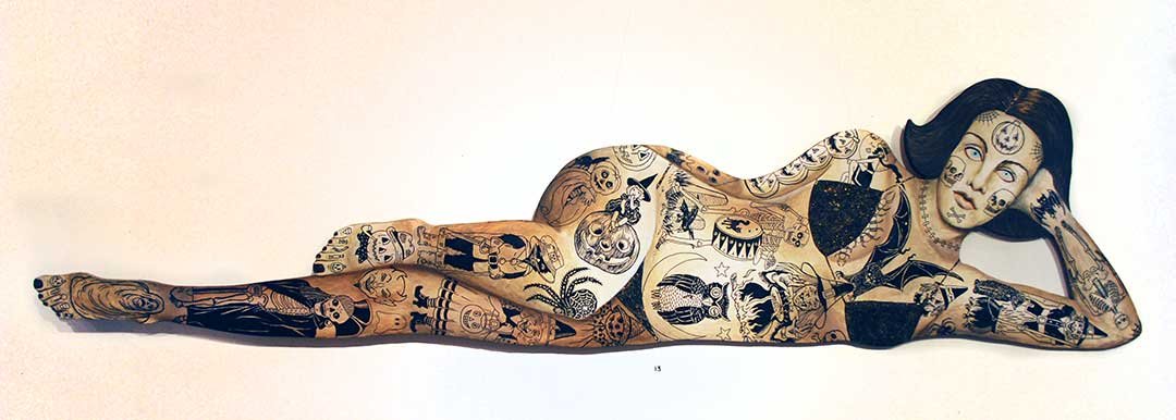 “Halloween Tattooed Woman” acrylic and enamel on hand-cut plywood $666