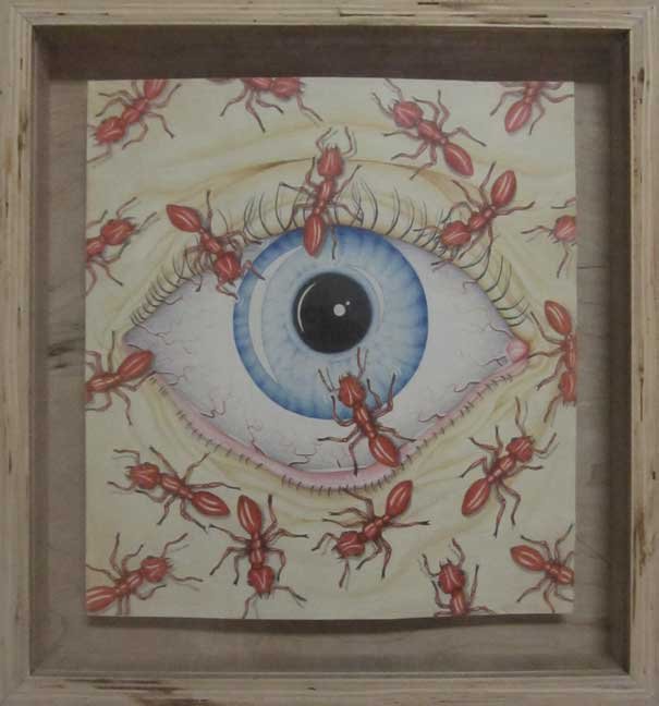"Dead Body" colored pencil on paper, custom frame $300