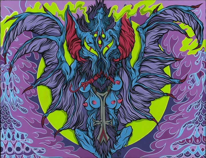"Beware The Beast Bat Of Samhain" cel vinyl and speedball on wood (17"x14") $400