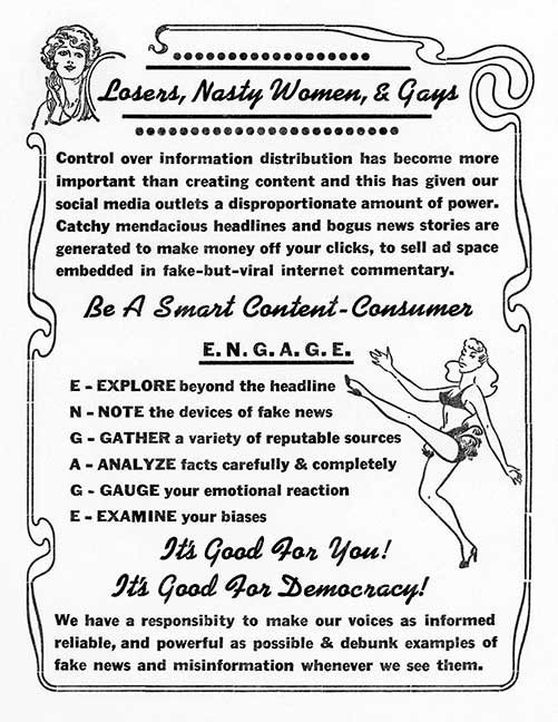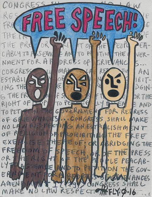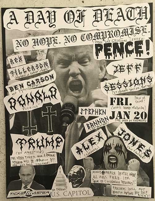 "Handbills of Subversion - Tremendous Art from Losers, Nasty Women and The Gays" opened on January 20th—inauguration night—at MF Gallery. The proceeds from this show will benefit Planned Parenthood and the ACLU. All pieces are priced at $120. In this time of great anxiety, fear and hate crimes throughout the United States, the worst we can do is become quiet and complacent. The pending Trump administration has threatened our civil liberties, inspired a rash of hate crimes and is on its way to normalizing sexual assault and bigotry. While we still have the right, this show will exercise freedom of speech, our freedom of expression, our freedom of the press.