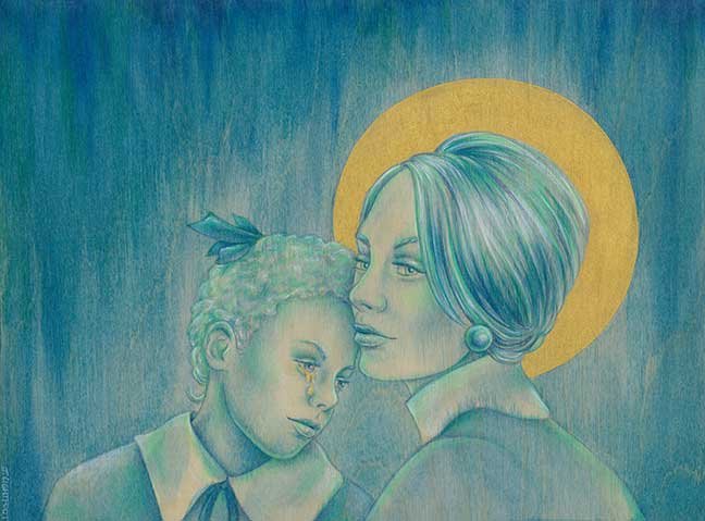 ![]() "The Family" mixed media on wood (12"x9" / 13.5"x10.5" with frame) $300 |