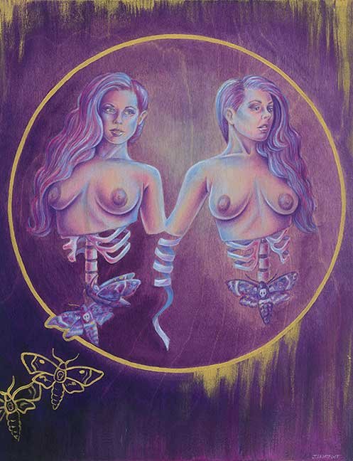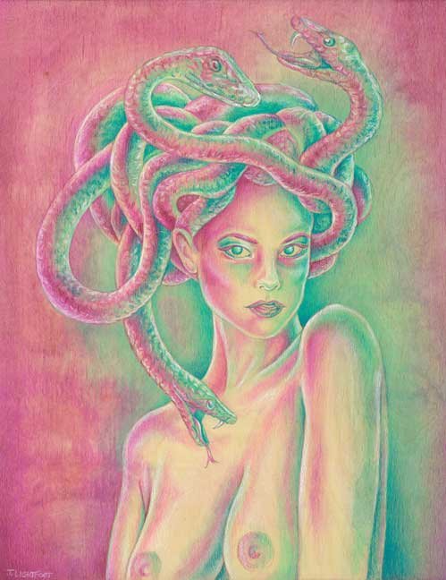 ![]() "Medusa" mixed media on wood (11"x14" / 12.5"x15.5" with frame) $400 |