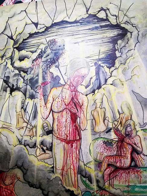 Montyill is a hardcore artist and 2-time felon from the hills of Northern Missouri. His work is like Frazetta and John Waters had a baby and it was raised by a Catholic priest (wink wink).