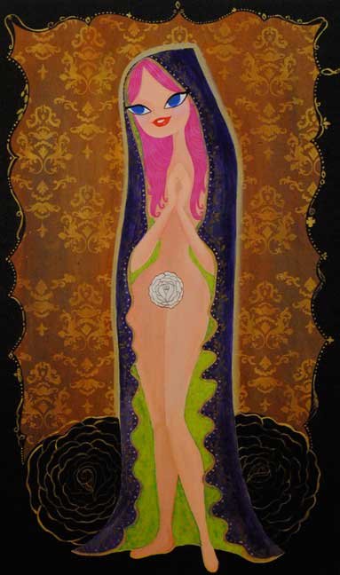 “Immaculate” acrylic and ink on wood (15.5”x26”) $300