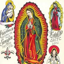 she is represented in film, television, t-shirts, stickers, tattoos,