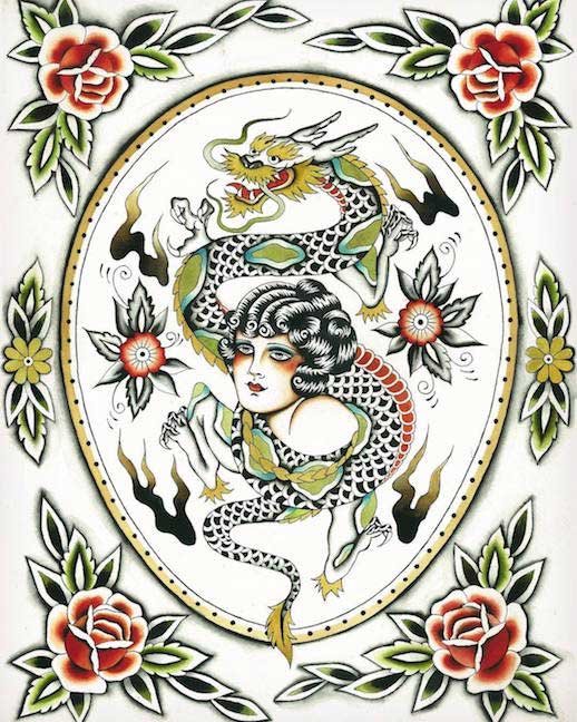 “La Femme Au Dragon” watercolor, ink on watercolor paper, unframed $350