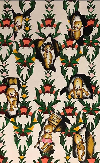 “Kewpie’s In Your Walls” acrylic and mixed media, framed (11”x17”) $400