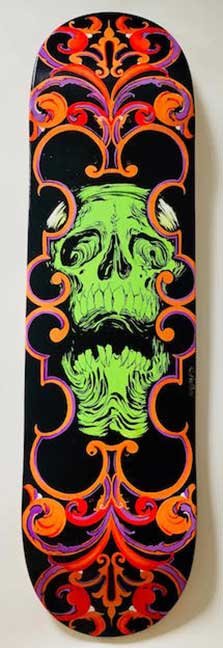 “Untitled” acrylic on wooden skateboard (8.5”x33”) $1500