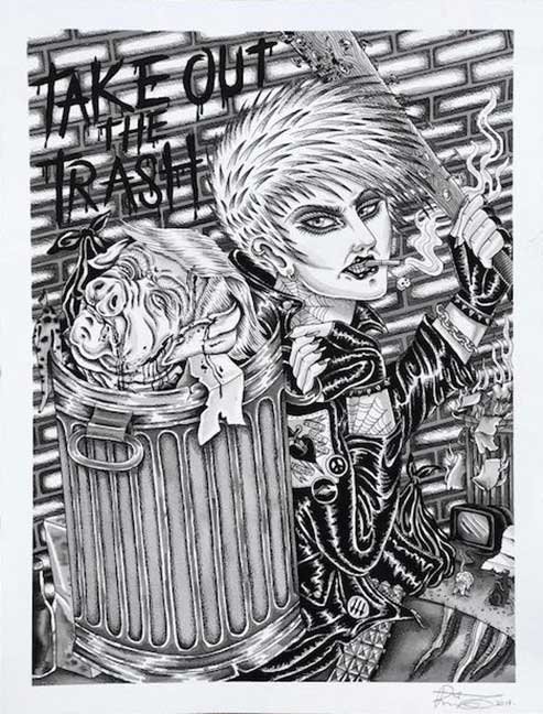 “Trash” ink, pen, pencil on watercolor paper, unframed (16.5”x22”) $600