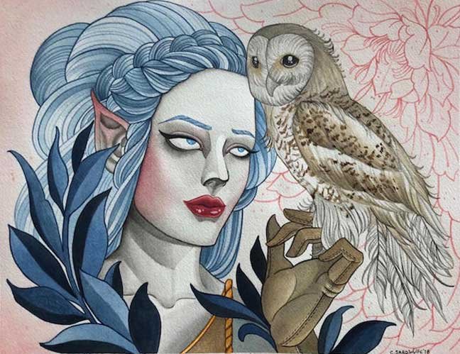 “Cauilleach-Oidhche (Crone Of The Night)” watercolor, ink, framed (11”x14”) $500