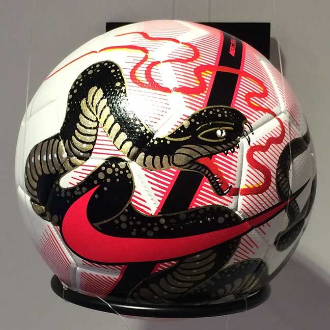 “Carpe PIla” acrylic ink on synthetic leather soccer ball $150