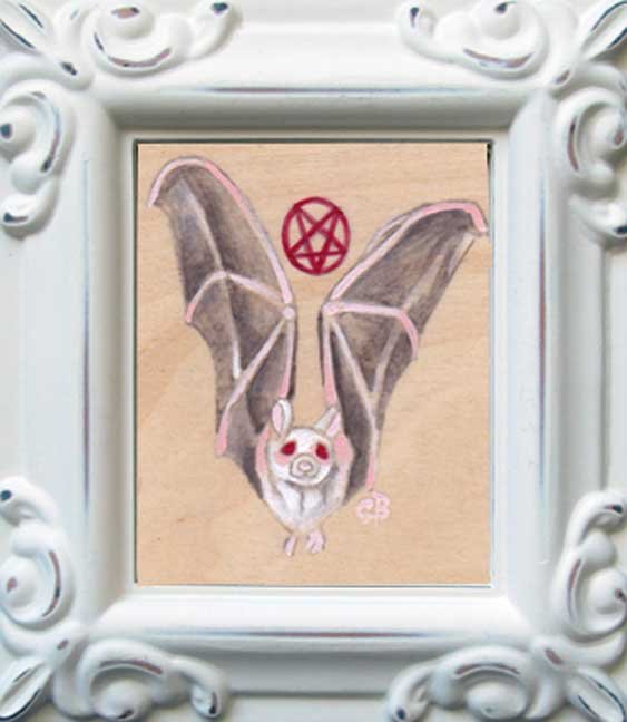 "Penta Bat" acrylic on birch panel (3.5”x4” framed)