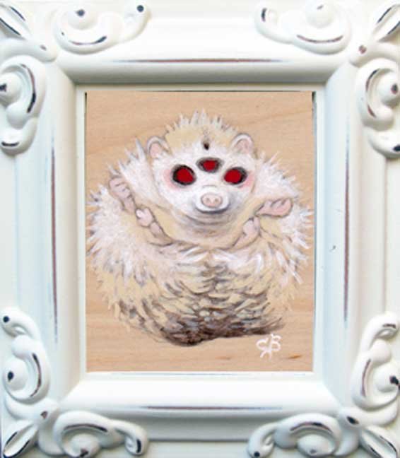 "Psychic Hog" acrylic on birch panel (3.5”x4” framed)