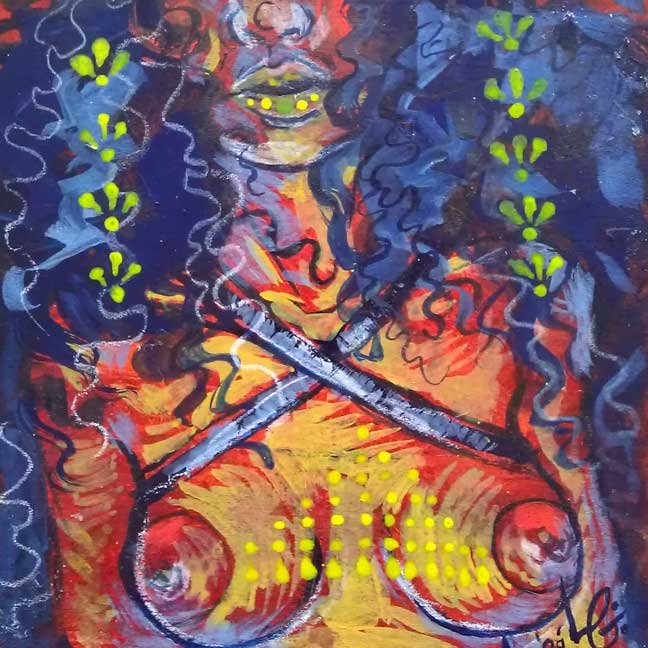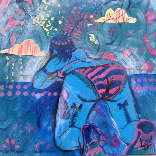 acrylic, gouache, mixed media on wood panel (6”x6”)