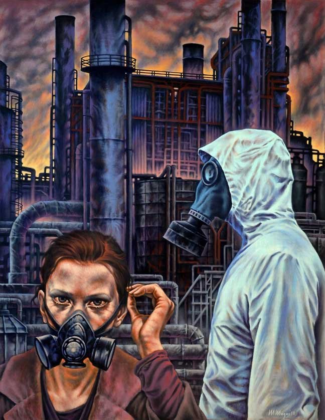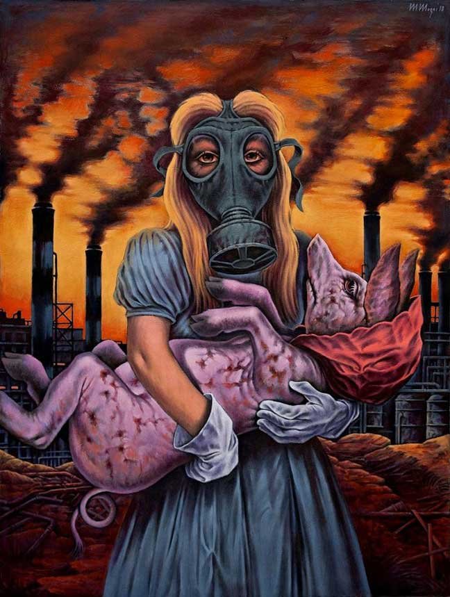 creando un metaforico scenario che prefigura catastrofi ambientali