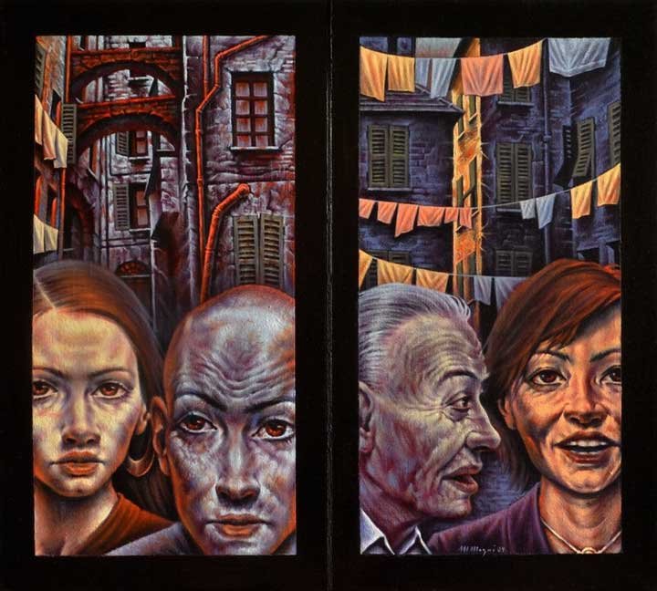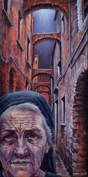 Di Vicoli”. Questi pezzi in olio su tavola e tela, rappresentano